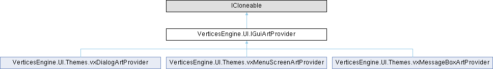 Implemented in VerticesEngine.UI.Themes.vxDialogArtProvider, VerticesEngine.UI.Themes.vxMenuScreenArtProvider, and VerticesEngine.UI.Themes.vxMessageBoxArtProvider.